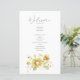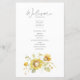 This cheerful yellow bohemian sunflower watercolor wedding program features elegant, watercolor sunflowers with light green foliage intertwined over unique typography. A wonderful theme for spring weddings, summer weddings and fall weddings and easy to personalise. Based on an original watercolor by © Lisa Audit Art. Surround yourself with heartwarming art.