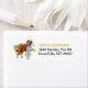 The left side of these return address labels feature an image of a beautiful St Bernard Dog among scattered sunflowers. Your custom text is in gold and black at the right.