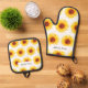 Sunflower Yellow White Chic Oven Mitt & Pot Holder Set