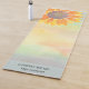 This floral yoga instructor yoga mat is decorated with a yellow sunflower and a colourful watercolor background.
