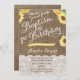 The invitations feature a burlap / lace effect background with cheerful watercolor sunflowers.