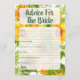 Sunflowers Advice For The Bride Shower Game Card