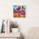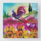 SUNFLOWERS AND BLACK ROOSTER SQUARE WALL CLOCK