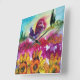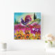 Colourful and vibrant Tuscany landscape with purple,green,brown,white colours,Summer flora,fields,meadows,flowers,cypress trees,antique rustic village under the blue sky.Acrylic painting on canvas .