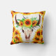 Sunflowers and Bull Skull Cushion