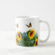 Accent the decor of your kitchen with this cheerful yellow flower mug. This mug features sunflowers and butterflies on a white background. This mug will compliment your summer and fall season decor.