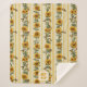 A cheerful and charming pattern featuring vibrant sunflowers and delicate butterflies set against a yellow vertically striped background. This blanket radiates warmth and positivity, evoking the carefree essence of late spring and summer days. Its soft, rustic colour palette and organic layout make it perfect for seasonal themes, country-inspired motifs, and sunny nature aesthetics.