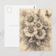 This elegant postcard features a graceful butterfly resting among hand-drawn sunflowers, all set against a softly weathered brown background that mimics the texture of aged parchment. The rustic tones and vintage aesthetic evoke the charm of old botanical journals and forgotten letters, making it a nostalgic piece full of warmth and natural beauty. Perfect for autumn themes, garden lovers, nature-inspired décor, or anyone drawn to vintage cottagecore vibes. A meaningful design for birthdays, anniversaries, or simply celebrating the timeless beauty of nature.