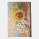 Sunflowers and Daisies on Rustic Table Tea Towel