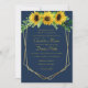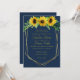 modern and romantic watercolor sunflowers with a navy blue background and a faux gold geometric frame.