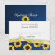 Country Sunflower invitation reply card with navy blue background accented with a pretty yellow bow. Elegant and romantic style printed design. Change text to suit your own needs. Feel free to contact me for additional design and colour options. All parts of this invitation are printed. No actual ribbon or bow is attached.