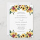 Lovely wedding invitation framed by watercolor greenery, sunflowers and red roses. Customise with your information for your wedding day. Click "click to customise further" to change the font style, size, colour or background colour.