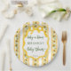 Sunflowers baby in bloom baby shower monogrammed paper plates template, yellow retro stripes sunflowers wavy bow border baby shower personalised paper plates, elegant vintage border sunflower baby shower paper plates, green and yellow sunflower baby shower personalised table decor