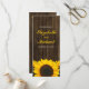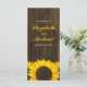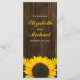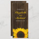 A country themed wedding program featuring yellow sunflowers on a rustic dark brown barn wood background. Easily customise for your event.