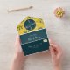 Elevate your wedding with our all-in-one invitation that beautifully blends botanical charm and modern boho style! Featuring a sunflower monogram and hand-drawn lovebirds, this rustic design in vibrant yellow and emerald green sets the perfect tone. A trendy handwritten script adds a personal touch, while a convenient QR code makes RSVP a breeze. Personalise it with your photo, wedding details, and custom image on the back for a truly unique keepsake!
