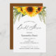 Beautiful autumn sunflower bridal shower invitation features a graphic of sunflowers and greenery across the top. Personalise with your bridal shower event details.