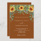 A burlap brown coloured background decorated with sunflowers, eucalyptus greenery. Personalise and add your names and party details.