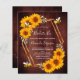 A rustic dark wooden barn wall as background. A faux gold geometric frame and happy smiling bumble bees. With the text: Bride to Bee and the name of the bride to be on front written with a modern hand lettered style script. White letters.