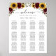 Sunflowers Burgundy Red Floral Greenery Wedding Seating Chart. Floral Burgundy Wedding Welcome Seating Sign