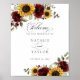 Sunflowers Burgundy Greenery Wedding Welcome Sign. Floral Burgundy Wedding Ceremony Reception Welcome Sign