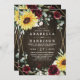 Sunflowers Burgundy Roses Rustic Geometric Wedding Invitation