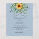 A dusty blue background decorated with sunflowers, eucalyptus greenery. Personalise and add your names and party details.