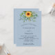 A dusty blue background decorated with sunflowers, eucalyptus greenery. Personalise and add your names and party details.