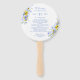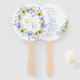 This round, sunflower paper fan is a beautiful way to share present your wedding program to your guests. Personalize the front with your initials and customize the wedding party information on the back. Add your thank you message to your guests for a finishing touch. This wedding hand fan is versatile for yellow and dusty blue wedding colors. This paper hand fan is a great addition to your outdoor summer wedding ideas.