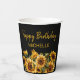 Sunflowers Elegant Black Happy Birthday Name Paper Cups