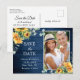 Sunflowers Eucalyptus Rustic Wedding Save The Date Postcard.