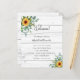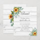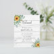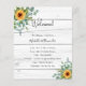 A modern, elegant, wedding program, timeline. Rustic white wood as background. Decorated with sunflowers, green watercolored eucalyptus greenery. Personalise and add your names and wedding details. Black coloured letters. If you have more text it's possible to reduce the line space, and remove the decor on the back.
