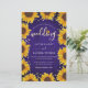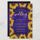 Sunflowers Gold Dots Blue Wood Wedding Invitation