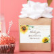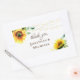 Rustic Wedding Thank You Sticker depicts floral watercolor yellow sunflowers and greenery with string lights.