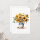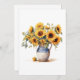 Pretty still life yellow sunflowers in a blue and white pitcher botanical print is the front of this greeting card. Text can be changed to your preferred greeting. AI assisted graphic purchased with commercial use. Artwork: CraftersOasisArt