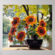 Sunflowers in a vase is a hybrid artwork I created from one of my photographs in a collage of an AI art image. The flowers are real, from my photograph, and their setting is in an AI image generated, with a lake view in the background. I am very pleased how this artwork came out. Hope you enjoy it too! Zenya Zenyaris 2024
