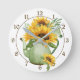 Sunflowers in Coffee Pot Pitcher Farmhouse Round Clock