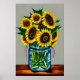 Sunflowers in Glass Vase Poster