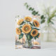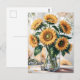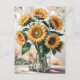 Send warmth and sunshine with this vibrant sunflower artwork. This detailed illustration features a lively bouquet of golden sunflowers arranged in a clear glass vase, capturing the beauty of natural light and the charm of classic botanical still life. Perfect for lovers of sunflowers, floral art, realistic botanical illustrations, and nature-inspired postcards