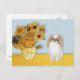 Sunflowers by Vincent Van Gogh, adapted to include a lemon and white Japanese Chin.