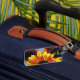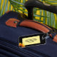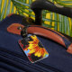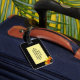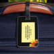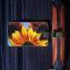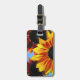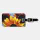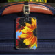 Make your luggage stand out on an airport carousel with unique tag designs! This colourful luggage tag will bring brightness and cheer to your travel experience! Three brilliantly coloured sunflowers are illuminated by the sunlight streaming through the petals. The flowers display a gorgeous palette of gold, yellow, orange, red and brown. Green leaves and blue sky complete this composition of colour and form. The back has all your personal information as well as one more sunflower. All text can be customised.
