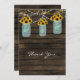 Barn wood and string lights , sunflowers in mason jars rustic bridal shower, country wedding shower thank you cards