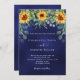 A navy blue coloured background decorated with sunflowers, eucalyptus greenery. The blue colour is uneven. Personalise and add your names and party details.