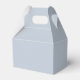 Pretty wedding favour box features watercolor sunflower bouquet on Plein Air (a pale blue) background with customisable text blocks in modern fonts