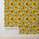Country at its best on this wallpaper! Bright yellow sunflowers with green leaves superimposed on a tan burlap texture, very cute and fun!