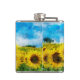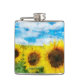 Sunflowers painting hip flask