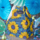 Yellow sunflowers pattern on a blue background. Impressionism painting.