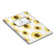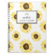 Customisable notebook featuring sunflowers pattern on green polka dots background. Other colours are available.