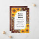 A rustic brown wooden barn wall as background decorated with watercolored sunflowers and happy smiling bumble bees. With the text: Home Sweet Home. Personalise and add your new address and name.