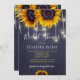 Rustic country style bridal shower party stylish invitation template on dark midnight navy blue chalkboard background featuring big yellow gold sunflowers and strings of white twinkle lights. +++++++++++ Easy to personalise with your details! Suitable for spring summer or autumn fall outdoor garden / backyard rustic country bridal showers / brunch /luncheon parties.
