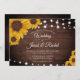 Sunflowers & String Lights on Wood Rustic Wedding Invitation